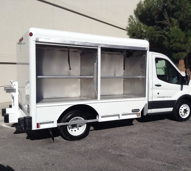 These smaller bodies are the perfect solution for medium to short delivery routes. The compact design allows for greater maneuverability while the extruded floors add strength and durability. You have the ability to pick and pack and have easy access for retrieval on either side of the body. Varying body and bay sizes allow us to build the body to fit your delivery needs.
